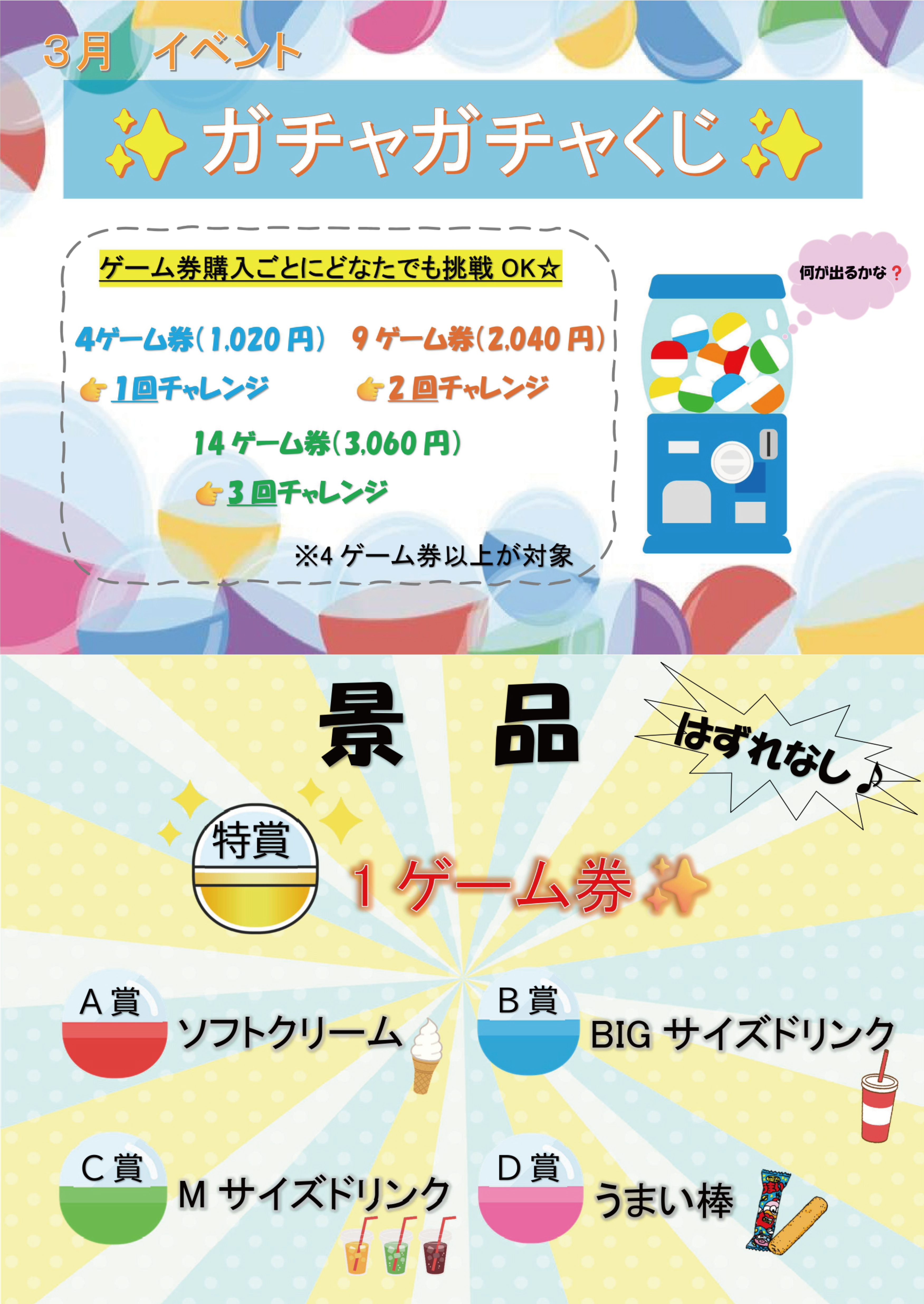 - 2026.03.013月イベント【ガチャガチャくじ】開催中!