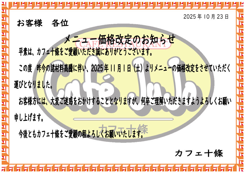 カフェ十條は≪小さな町のカフェレストラン≫として生まれました。